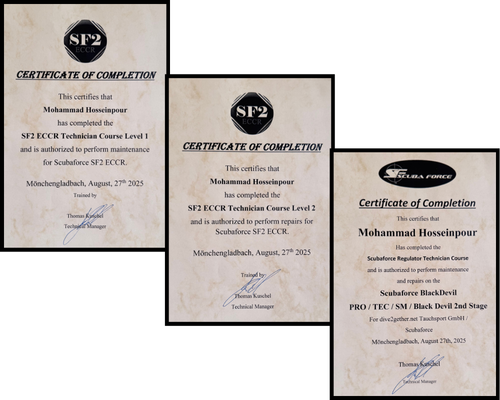 With nearly two decades of hands-on experience, we provide comprehensive scuba diving equipment servicing, technical support, and dive center solutions—from basic recreational gear to advanced professional and technical diving systems. Our services are performed by certified technicians, following manufacturer standards, using approved tools, procedures, and original or specified service parts. We offer full inspection, maintenance, repair, and overhaul services for a wide range of scuba diving equipment, including: